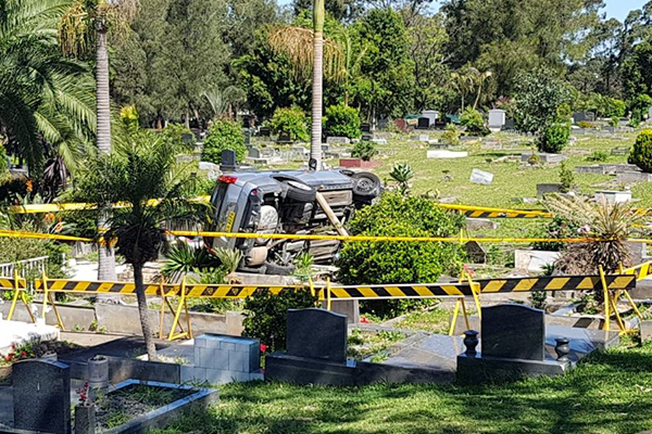 Car crashes into Sydney cemetery