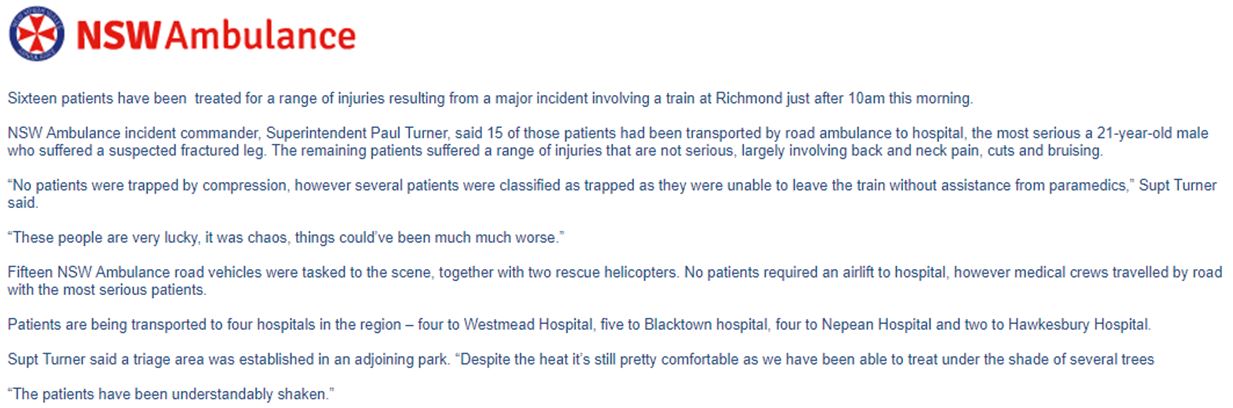Click here for the full NSW Ambulance statement