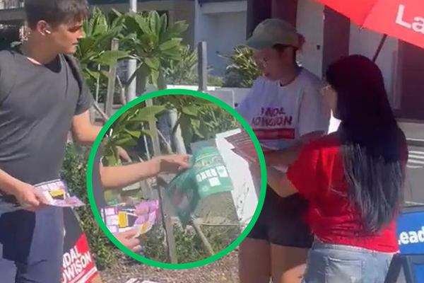 EXCLUSIVE | Labor volunteers SPRUNG handing out for the Greens