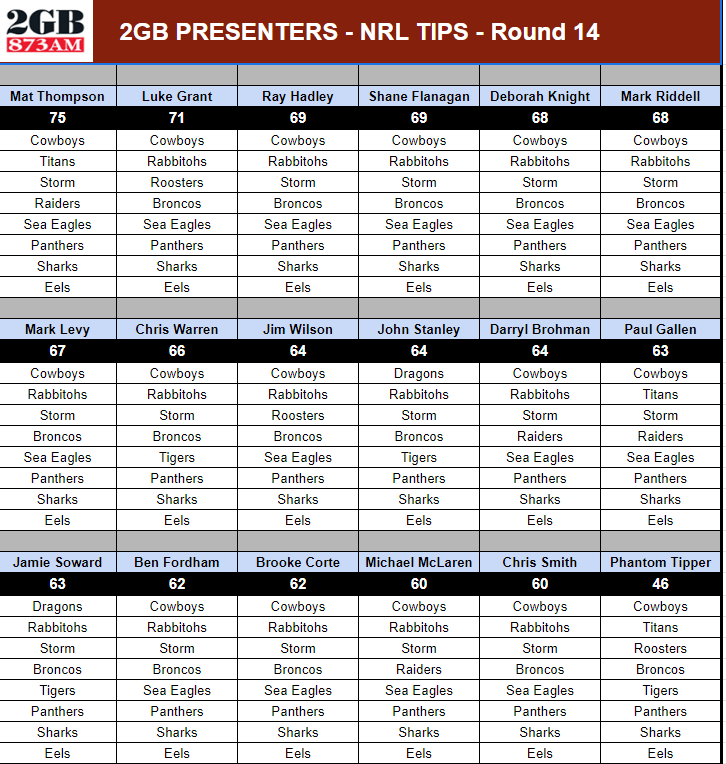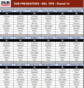 Each week, Ben Fordham, Ray Hadley, CCT members and the rest of our presenters will reveal their tips right here before the round gets underway.