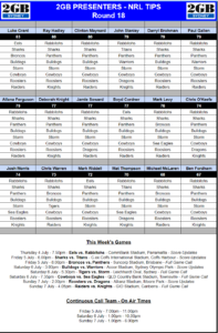 Another epic round of footy continues, and what better way to get behind the footy than by following along with tips from the 2GB presenters!