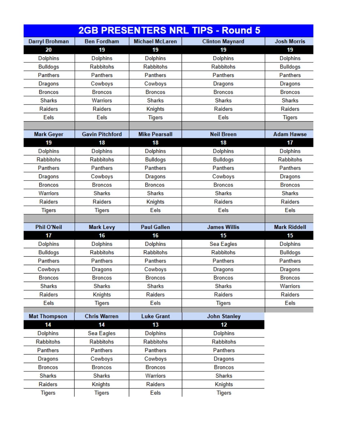 The NRL season is officially back underway, and what better way to get into the spirit than to test your tipping skills against 2GB’s NRL experts and presenters!