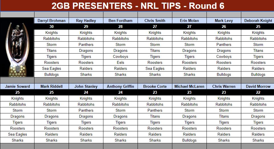 Each week, Ray Hadley, Ben Fordham, CCT members and the rest of our presenters will reveal their tips right here before the round gets underway.