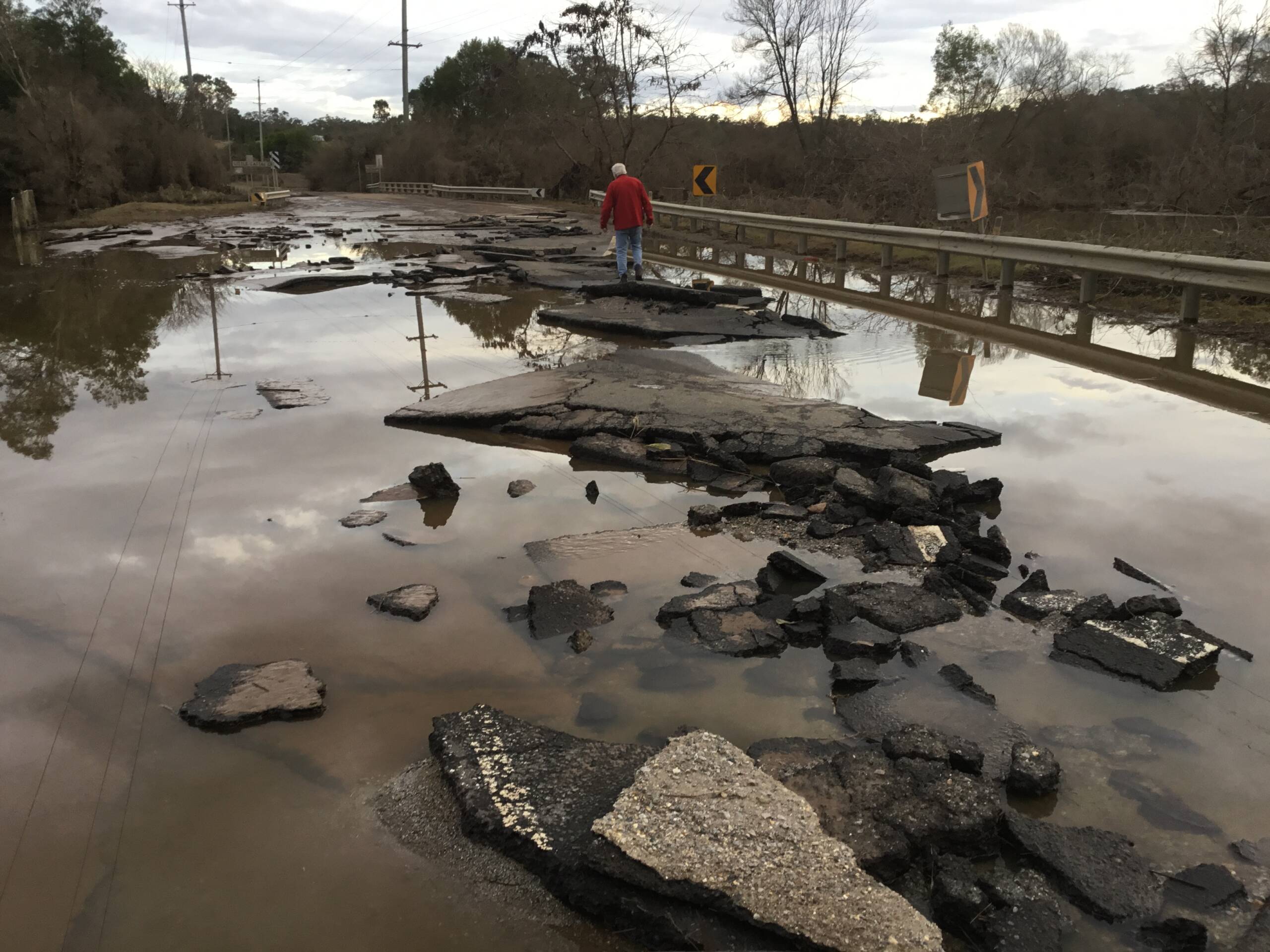 The damages from the water are noticeable as the tarmac has been ripped to pieces.