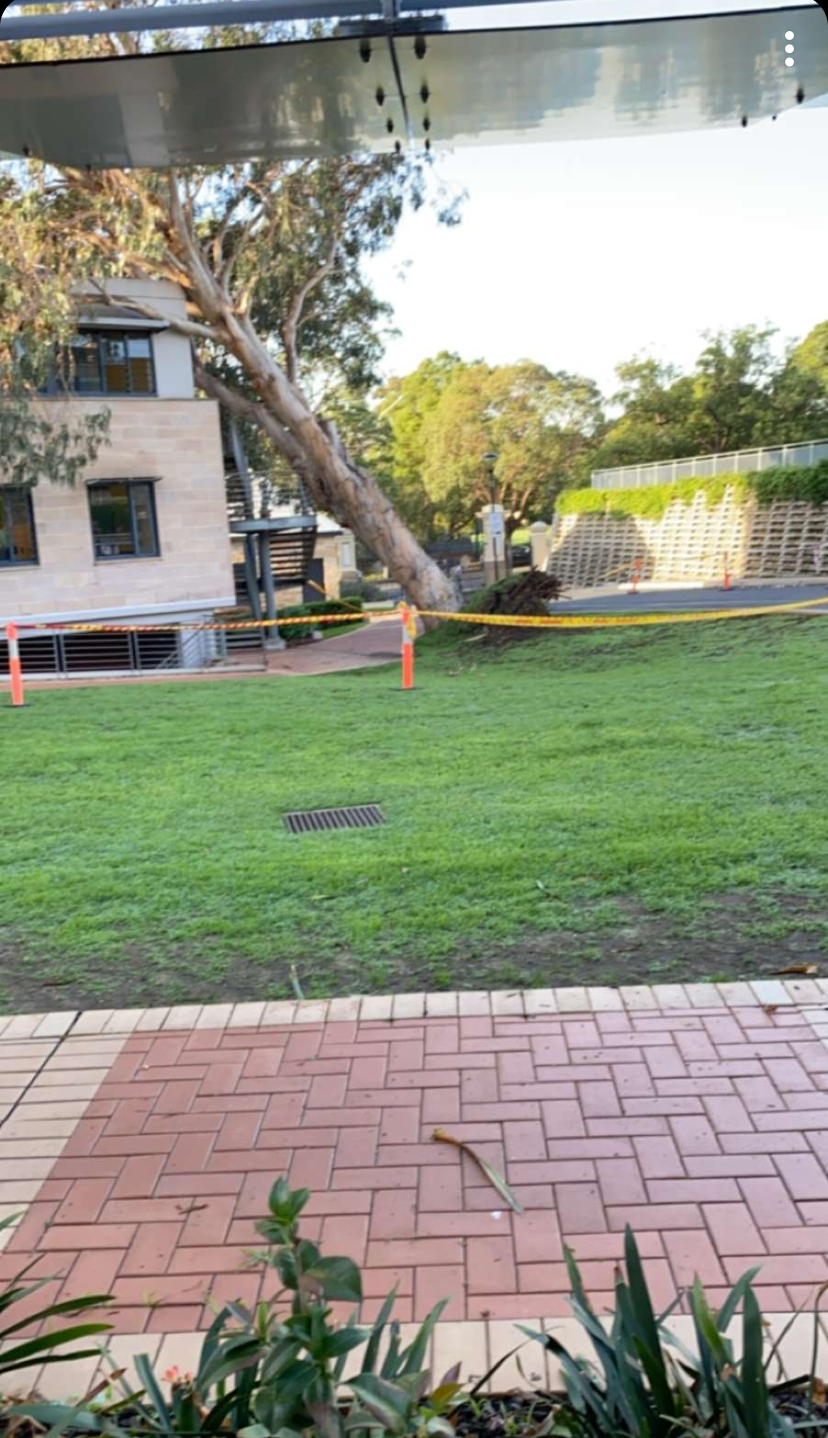 A giant tree was blown onto a prestigious private school on Sydney’s North Shore.