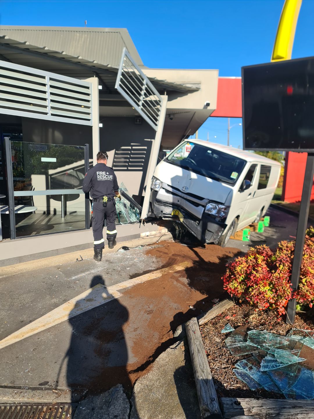 At Lansvale a van has crashed in the Maccas drive-thru at the corner of the Hume Highway & Cutler Rd.