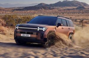Driving Hyundai’s latest Sante Fe Hybrid – behind the wheel noticeably larger to its predecessor, now squarer edged, a very roomy seven-seater with exceptional cargo space but if anything it looks a little tail heavy due to an enlarged tailgate. This latest Hyundai Sante Fe initially available as a 1.6-litre turbo petrol hybrid six speed automatic in a base model, mid-spec Elite and top-grade Calligraphy – and depending on model, front or all-wheel drive. A 2.5-litre pure petrol 8-speed automatic arrives late this year. I tested the Elite all-wheel drive, now $2,000 dearer at $65,000 plus on-road costs. The hybrid power trains 172kW of power, 367Nm of torque more than adequate – providing excellent fuel economy – I managed 7.7L./100km around town and on 91 grade petrol. Economy aided by three levels of regenerative braking and in its highest level you hardly need to touch the brakes. Biggest annoyance the speed limit warning and driver attention monitor – both features need more development and refinement and are just plain annoying and of no real driver benefit. They can be switched off but every time you start the car they renew. Like a lot of the new Chinese SUV’s these warning chimes are distractive, and a turn off to most drivers. I’m David Berthon.