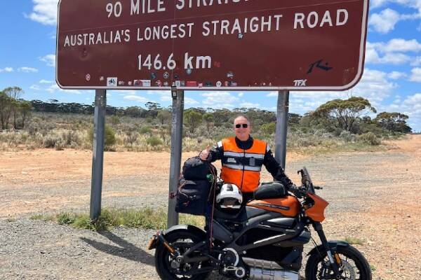 Ed recently retired and decided that now was his chance to buy a Harley Davidson LiveWire electric motorbike and ride from Perth to Sydney.