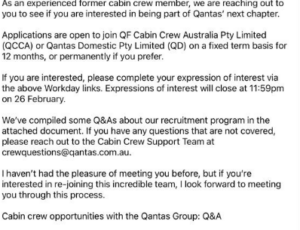 Qantas is trying to rehire some of their staff who either quit or were made redundant.