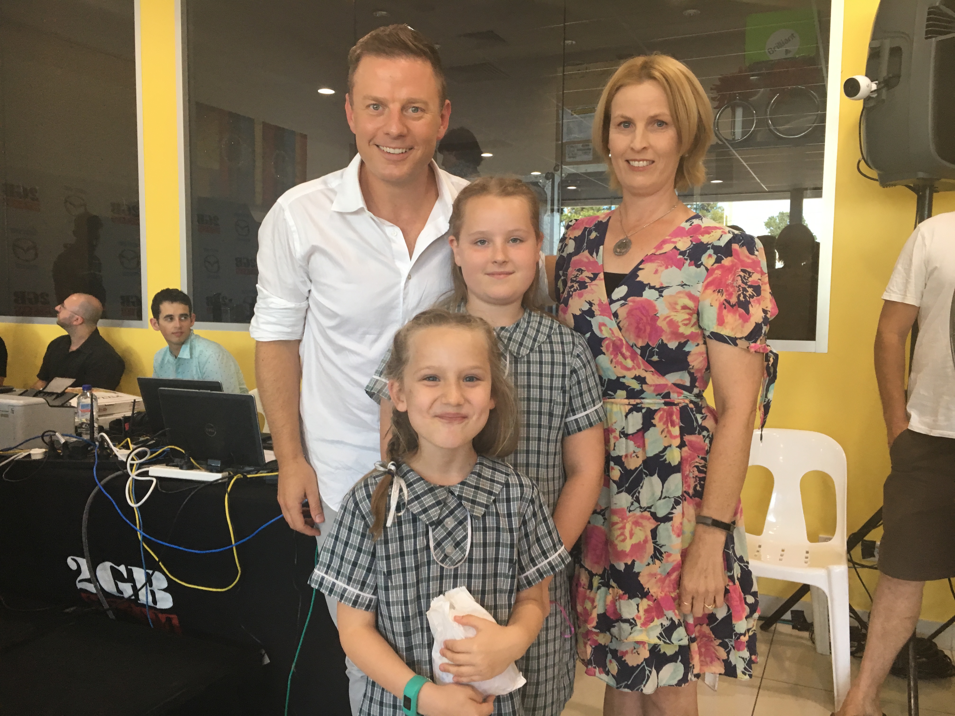 Rebecca and her two daughters with Ben Fordham at his live broadcast.