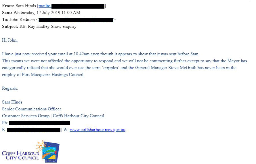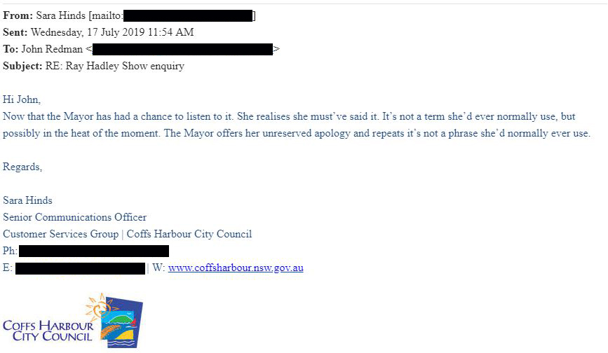But when The Ray Hadley Morning Show sent the mayor audio of her comments she backtracked an “unreserved apology”.