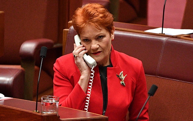 Image: One Nation leader Senator Pauline Hanson before the income tax vote in the Senate Chamber at Parliament House in Canberra.